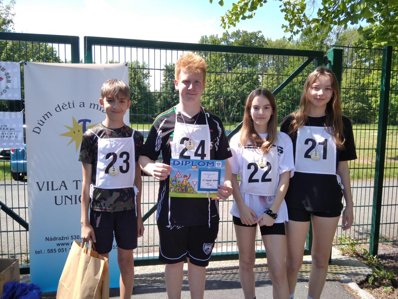 - A pak si čtveřice soutěžících: Klárka Němcová, Štěpán Ovčačík, Emča Hargašová a Dan Březina porovnali síly s ostatními družstvy v těchto disciplínách: zdravověda, jízda zručnosti, řešení dopravních testů a nejobtížnější byla jízda prostředím hřiště = „města“ za dohledu strážníků městské policie v Uničově.