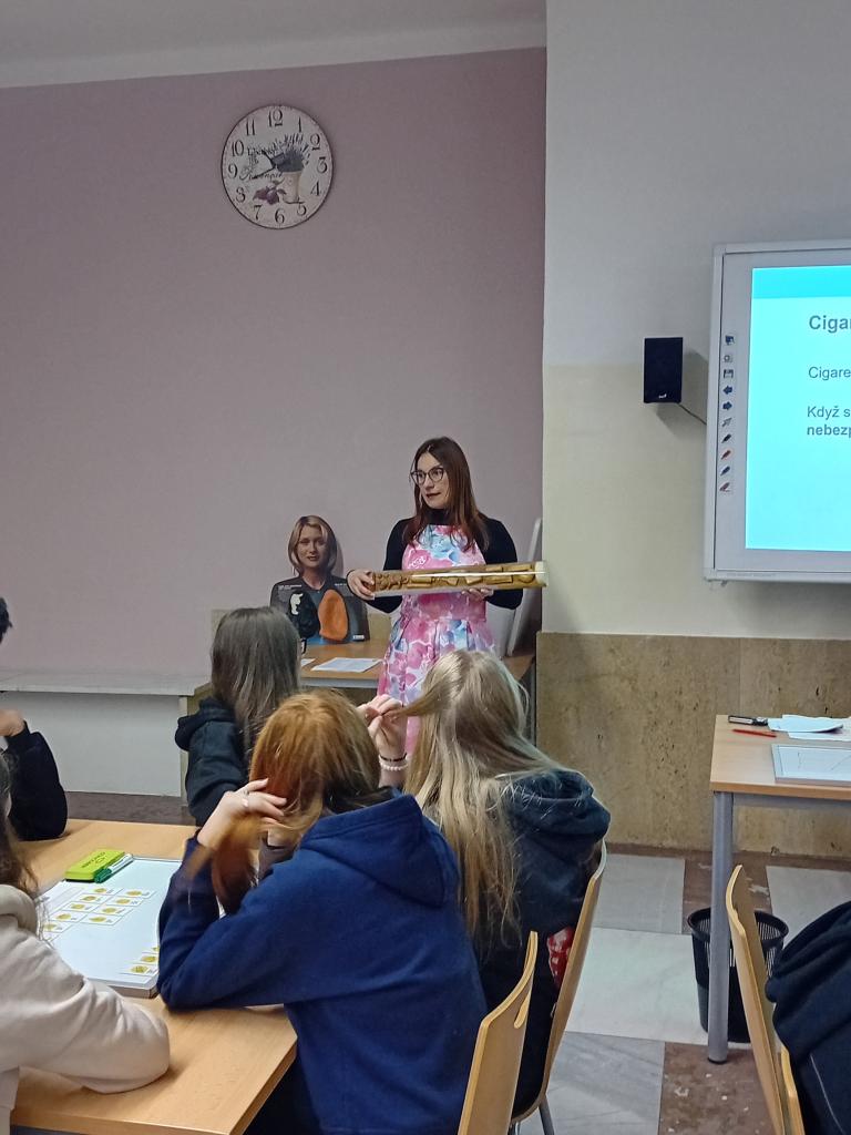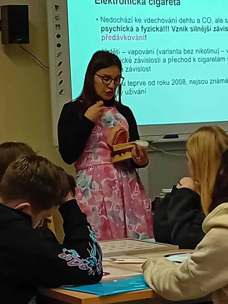 Cílem celého programu bylo zvýšení znalostí dětí o rizicích spojených s kouřením, a to jak klasických cigaret, tak i jejich alternativ jako jsou vodní dýmky a elektronické cigarety a nikotinové sáčky. Dozvěděli jsme se, že v cigaretovém kouři se ukrývá přes 4 000 chemických látek a také jsme si ukázali rozdíl mezi zdravými a nemocnými plícemi a končetinami. Přednášku doprovázelo mnoho aktivit,do nichž se žáci nadšeně zapojovali. Ve skupinkách plnili nejrůznější úkoly ,diskutovali a soutěžili o ceny. Nejdříve dostali magnetky s ikonami různých chemických látek jako například dehet a nikotin.Druhý úkol byl pro matematikáře. Měli spočítat, kolik cigaret vykouří ročně průměrný kuřák. Čísla nás překvapila jak u Čechů, tak u obyvatelstva celého světa. Poté jsme zjistili, že elektronická cigareta a vodní dýmka jsou škodlivější než obyčejná cigareta a jaké nemoci může kouření způsobit. Spočítali jsme, kolik lidí na světě zemře v důsledku kouření. Zajímavé bylo i zjištění, jakou sumu peněz ušetří člověk, který si cigarety přestane kupovat. Díky preventivnímu programu jsme získali mnoho užitečných informací a je na každém z nás, jak je využijeme ve svůj prospěch. Nakonec,abychom se odreagovali od vážného tématu, jsme se učili základům žonglování.