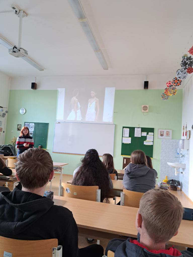 V úterý 1. 4. 2025 přijela za dětmi z 5., 6. a 8. třídy lektorka z Poradny pro ženy v Olomouci paní Jana Stejskalová. Během několika hodin se jim snažila vysvětlit, jak jejich tělo během dospívání funguje, jak se mění a také co vede mladé lidi k nesprávné životosprávě. Řekla jim, jak má vypadat správný jídelníček, které potraviny jsou vhodné a které ne. Také jim vysvětlila pojmy mentální anorexie a bulimie, jaké jsou příčiny vzniku a také fyzické a psychické důsledky těchto poruch. Uvedla jim i konkrétní příklady z praxe. Na závěr mohly děti klást otázky na témata, která je ohledně dospívání a puberty zajímají. A bylo jich opravdu hodně.