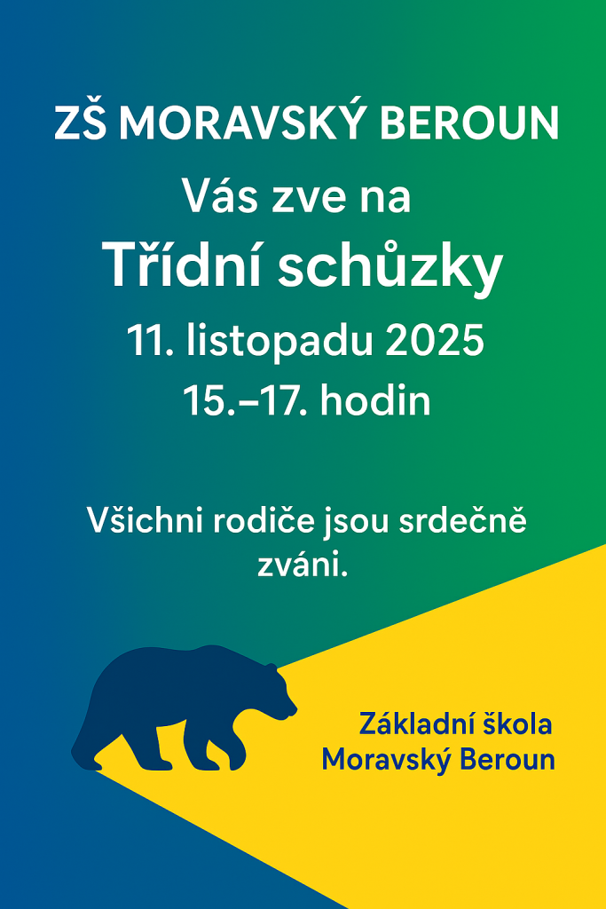 Rádi bychom Vás pozvali na rodičovské schůzky, které budou probíhat formou individuálních konzultací od 15. do 17. hodiny.