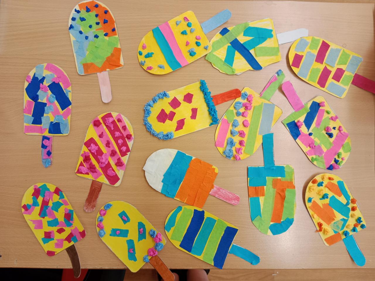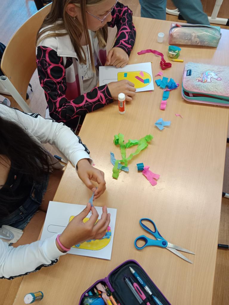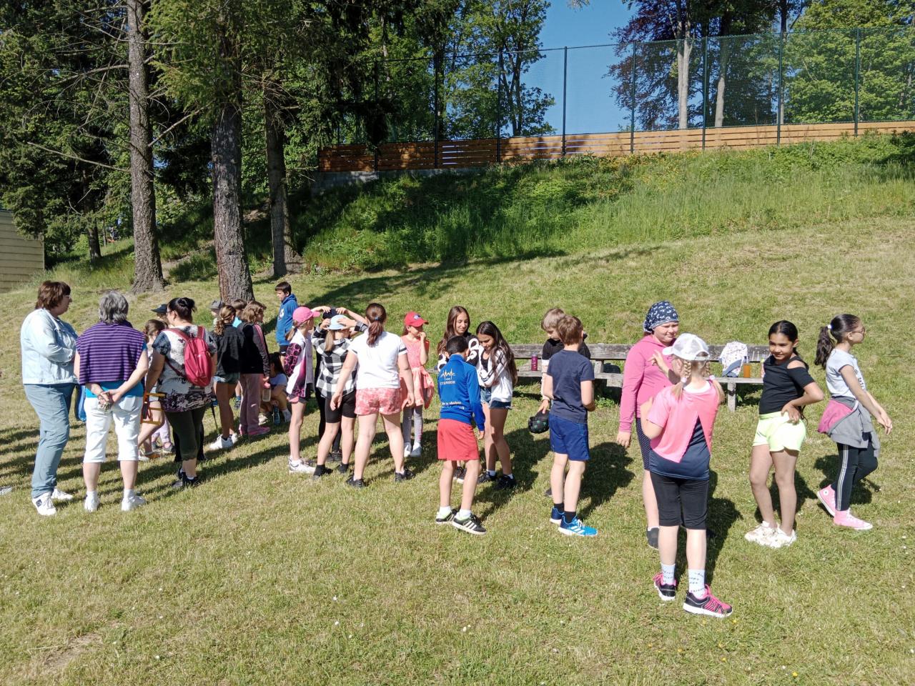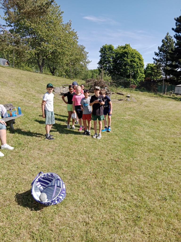 Ráno jsme se všichni sešli ve třídě a protože venku hřálo sluníčko,rozhodli jsme se, že se trochu zchladíme. Den jsme započali výrobou nanuků, i když jen těch papírových.To jsme ale ještě nevěděli co nás čeká později. Jako další bod na programu bylo plnění úkolů na stanovištích a to nás moc bavilo. Teplo bylo čím dál tím větší a proto nastal čas na překvapení. Opravdová zmrzlina! A ta nám teda bodla :) Po malém osvěžení následovala procházka na Křížový vrch,kde jsme v plnění úkolů pokračovali, když jsme ovšem došli k dětskému hřišti, bylo jasno,že zůstáváme a trochu se pobavíme i zde. Dopoledne se vydařilo, počasí nám přálo a my si to moc užili!