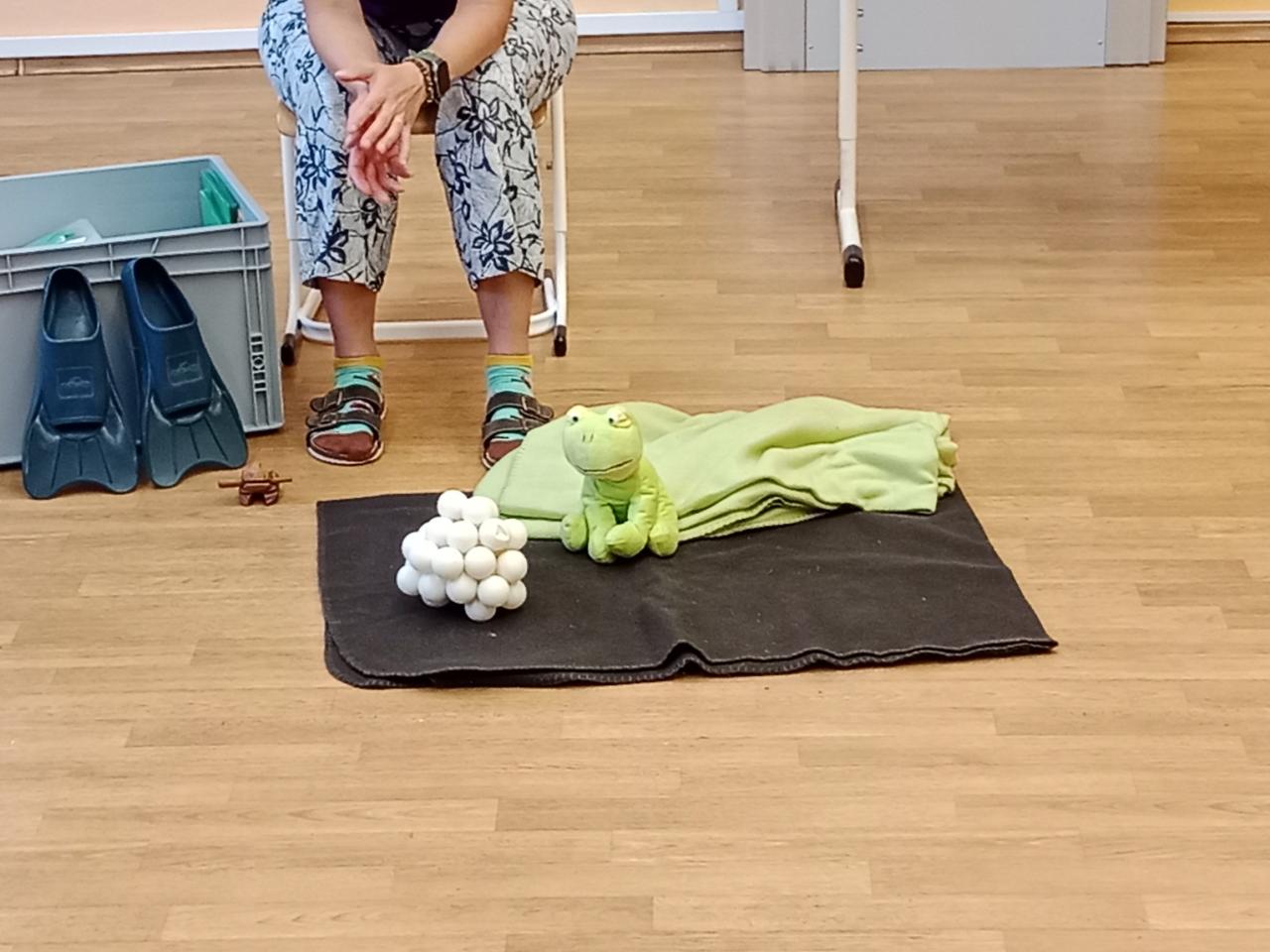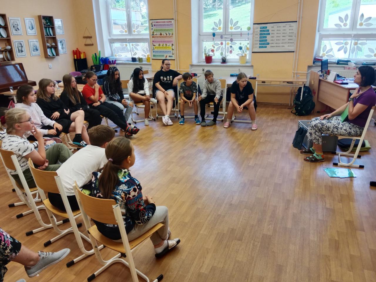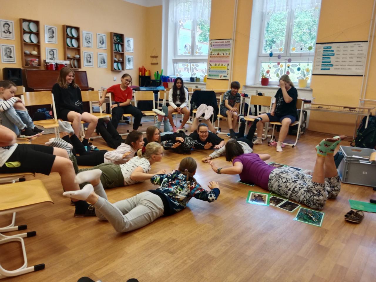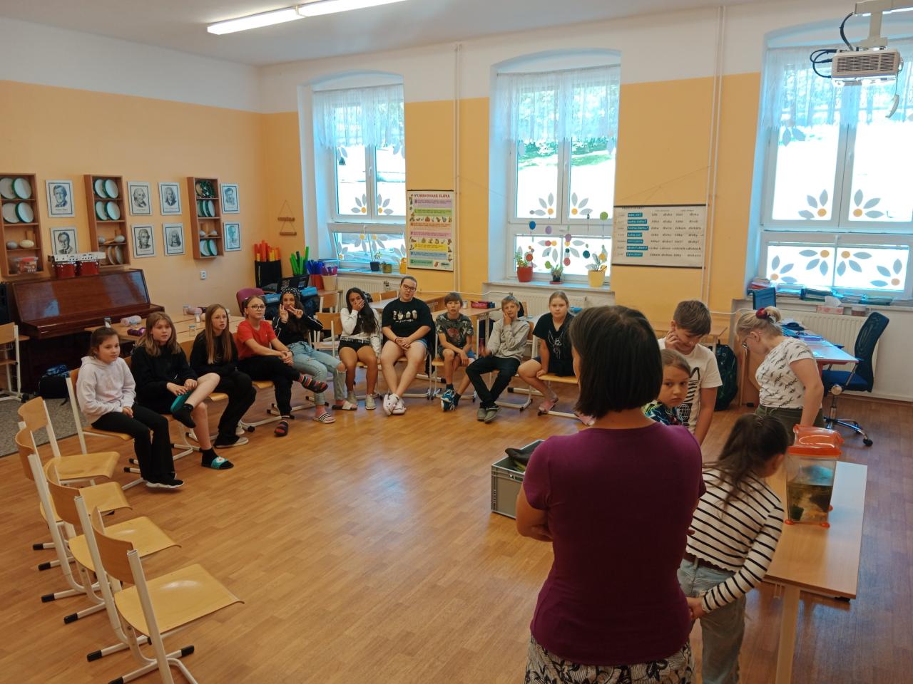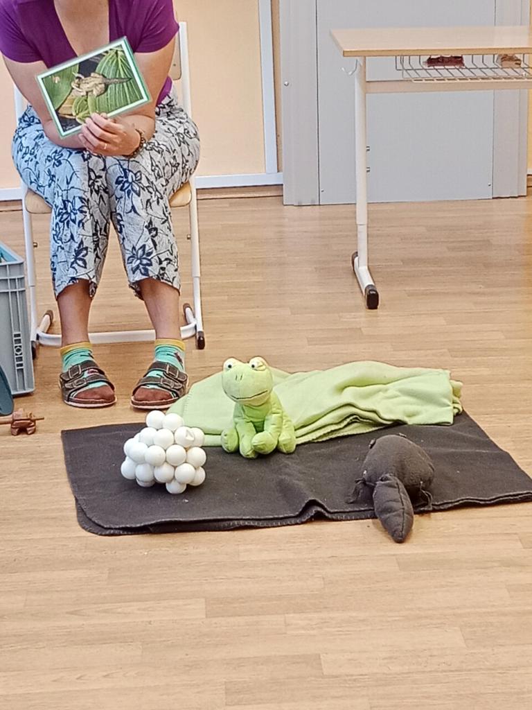 Ve čtvrtek 6. června nás navštívila paní Pacovská s dalším programem.Tentokrát s názvem Kvaky kvak, jde sem čáp!