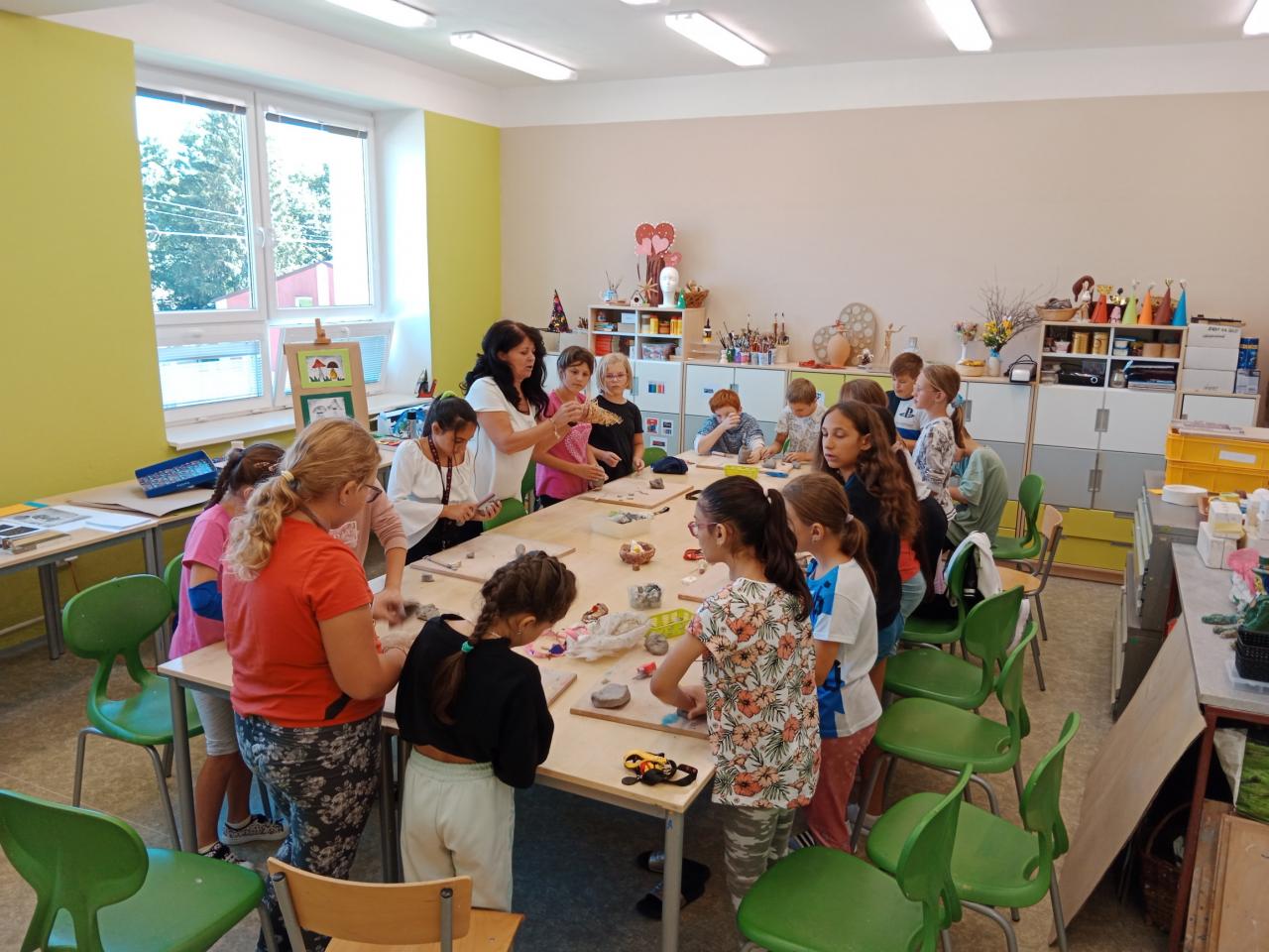Ve čtvrtek 7.9. jsme navštívili základní uměleckou školu - její výtvarnou část. Úkol zněl jasně, vytvořit magické vozítko. Naše práce měla jeden malý háček. Každé dvě minuty jsme si díla posílali na výměnu. Na výsledky se podívejte sami.