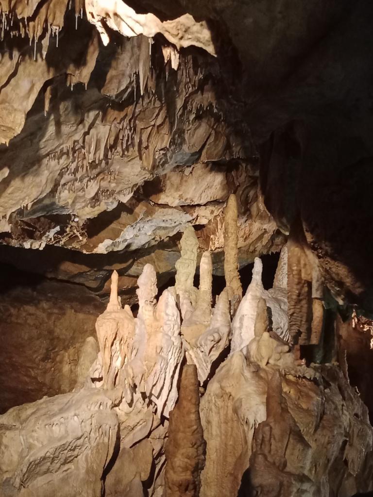Dále jsme shlédli Mladečské jeskyně, které se nachází v CHKO Litovelské Pomoraví. Navštívili jsme podzemní prostory, které jsou bohatě zdobeny krápníky. Jeskyně nám nabídly atmosféru dávné minulosti. Je to největší a nejstarší sídliště cromagnonského člověka ve střední Evropě. Viděli jsme zbytky ohnišť a kostí pravěkých zvířat, Chrám přírody, Panenskou jeskyni a přes dva metry vysoký stalagtit Mumie.