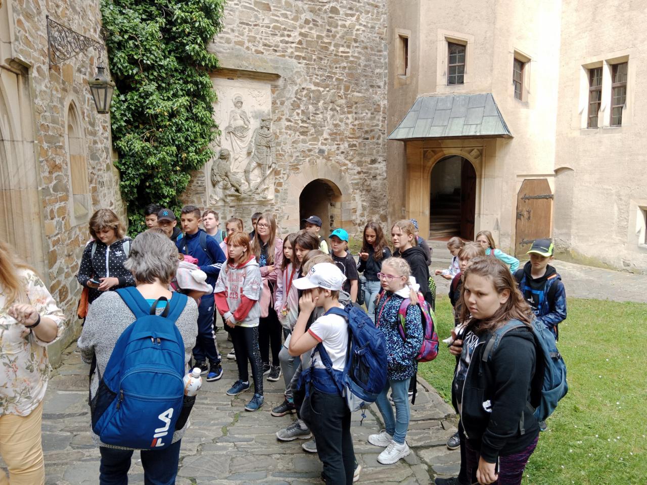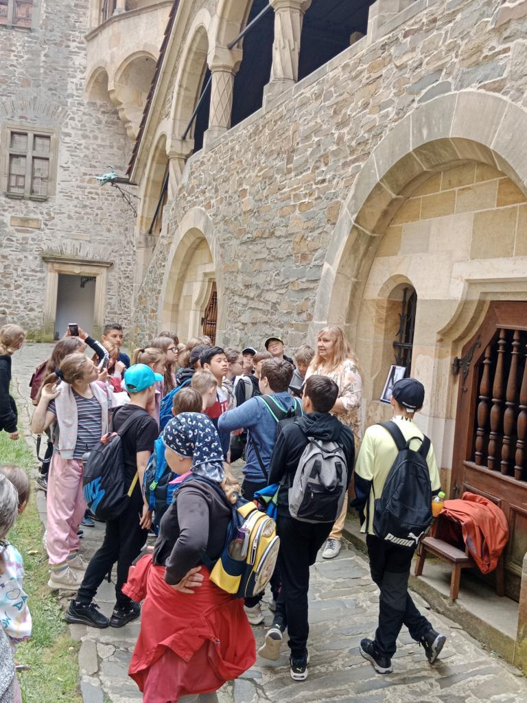 Navštívili jsme hrad Bouzov, kde jsme absolvovali speciální prohlídku určenou pro žáky 4. – 7. tříd základních škol. Kromě historie hradu, se žáci seznámili i s informacemi o životě na hradě v období středověku a novověku (šlechtické zábavy i každodenní život) a sami se aktivně zapojili do prohlídky.