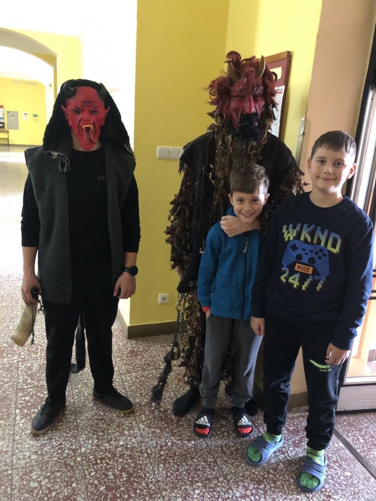 Dnes k nám přišla návštěva a jelikož je 5.12. tak se nikdo nebude divit, že dorazil Mikuláš s čerty a anděli. Děti jim řekly společnými silami pěknou básničku a andílci jim dali sladkou odměnu. Dva kluky nám sice chtěli vzít do pekla, ale všichni jsme se za ně přimluvili, tak nám je vrátili :).