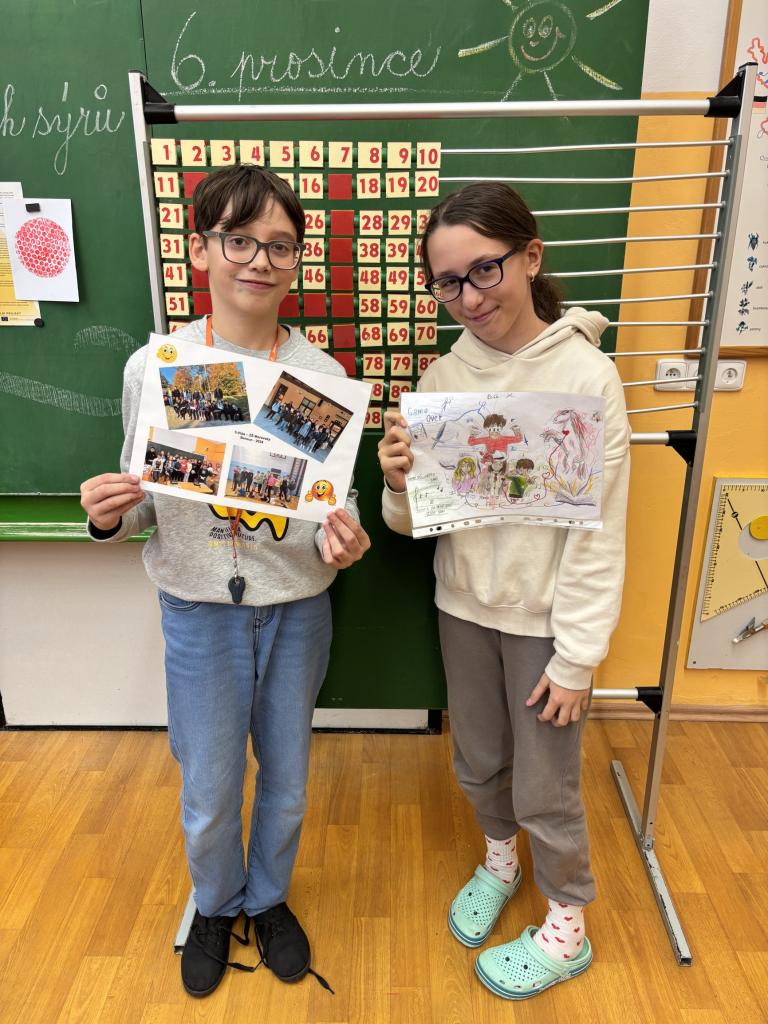 Peťa se bohužel stěhuje a bude navštěvovat jinou školu. Na památku od nás dostal zalaminovanou koláž ze společných fotek a kamarádi mu nakreslili obrázky, kde jsou společně. Předání obrázku měla za celou partu na starosti Monča :). Peťovi přejeme ať se mu v nové škole líbí, najde si nové kamarády a ať se mu daří :)